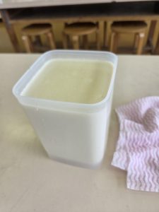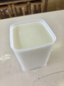 り、にがりを入れて固まらせたりして、豆腐を完成させました。