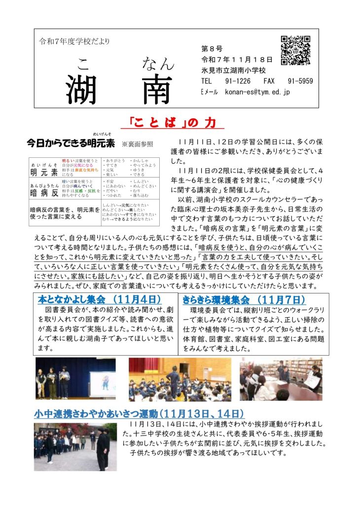 2学期も、登校する日は22日間となりました。あたたかい言葉を伝え合い、自分も周りにいる人も元気に、笑顔で過ごせるよう努力していくことを湖南子に伝えました。