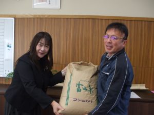 氷見市の子供たちに、米不足の状況下でも地元のおいしいお米を食べてもらい、氷見のよさを実感してほしいという気持ちから、氷見市内の小中学校給食施設に、寄贈していただいています。