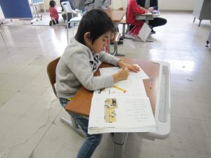 縦割り班のみんなと協力して答えを考え、ウォークラリーを楽しむ湖南子でした。