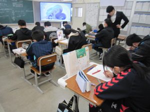 これまで学んだことを思い出しながら、先生の問いに答えたり、ノートを書いたりしながら授業に集中