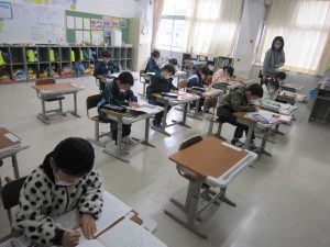 他学年が学年閉鎖の中、1・5年生は、がんばって学習しています。