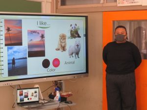 ジェアヌ先生の好きな食べ物やアニメなどを聞いて、自分の好きなアニメを伝え合っていました。