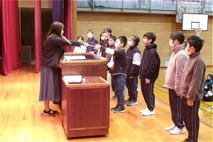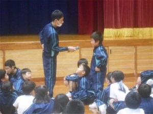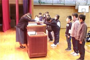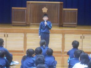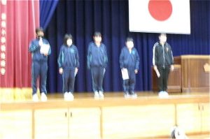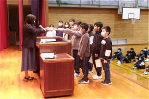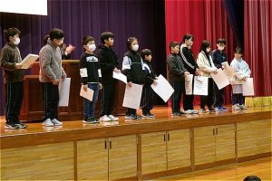 朝、授賞集会がありました。さまざまなことにチャレンジし、表彰状が届いている子供たちをみんなで讃えました。これから全国大会へ出場する児童へのエールも送りました。