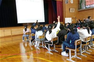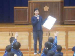 どのようなことばを使うことで、自分の心を元気にするのか、坂本先生のお話から考える機会となりました。深層心理クイズ等、子供たちは、進んで挙手をし、自分の思いを伝え合っていました。