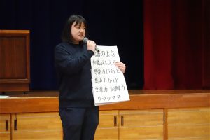 臨床心理士の坂本美奈子先生をお招きし、「今日からできる明元素『ことばの力』」と題し、子供たち、保護者に向けてご講演していただきました。