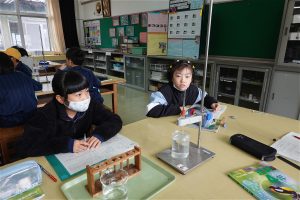 4年生は、理科で「ものの体積と温度」の学習をしています。