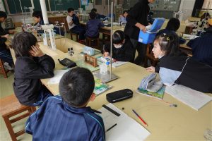 実験の後は、友達と話し合ったりノートを書いたりして、