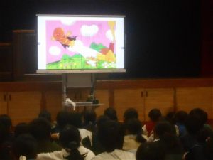 「アンパンマン」の読み聞かせやクイズ、本の使い方、マナーの劇等を通して、本のことを知り、読書