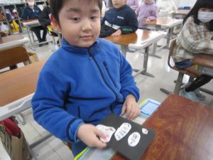 そして、2年生は、登校してくる湖南子に、手作りの挨拶名人カードを手渡していました。