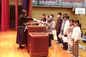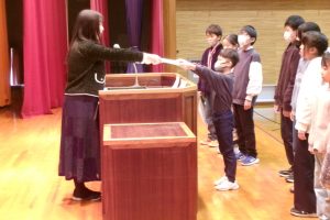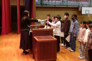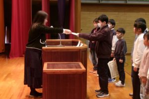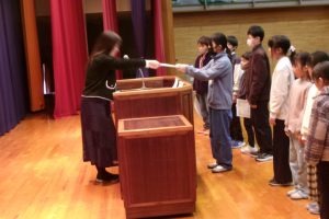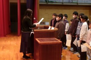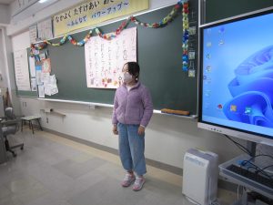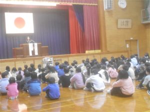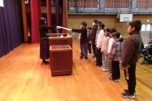 そして、子供たちには、楽しい冬休みになるよう、「自分で決めて実行しよう」「顔の見えるコミュニケーションを心がけよう」と2つの挑戦について話しました。