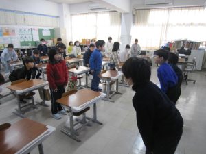 明日から、自分が心がけていこうと思うことを、学級の代表4名が放送します。