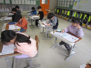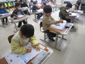 【1年生】カタカナのワークを丁寧に書いていました。みんな、集中しています。