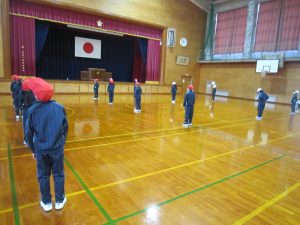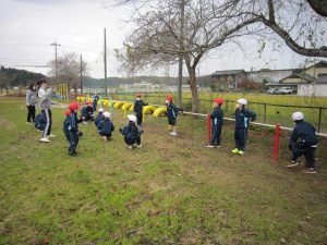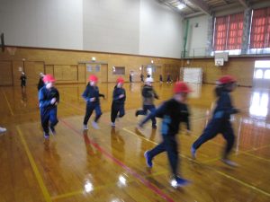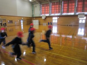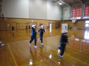 2年生も体育科で、元気に準備体操、4分間走をしていました。
