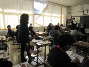 6年生は、外国語の学習です。英語を聞き取り、分かったことを発表していました。