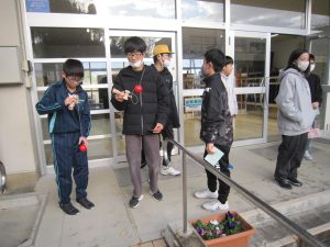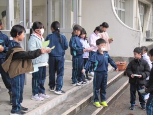 そして、2年生は、登校してくる湖南子に、手作りの挨拶名人カードを手渡していました。