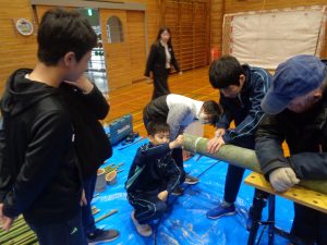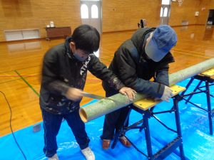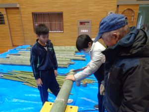 6年生は、総合的な学習の時間に、門松づくりの準備を進めています。