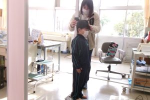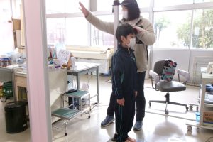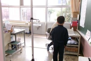2年生は、先生のお話をしっかり聞いて、体重、身長、視力測定を行っていました。