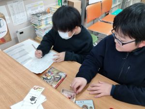 貸し出しのしおりを渡したり、書いていない部分を書いたりする姿が見られました。