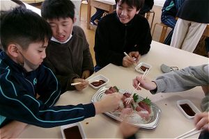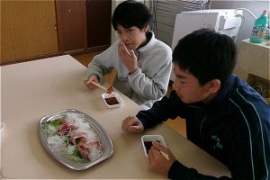 脂ののったブリを、子供たちは笑顔いっぱい、あっという間にたいらげ、おかわりをしていました。