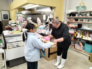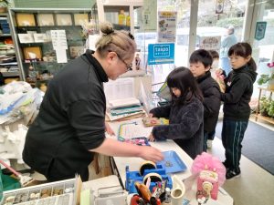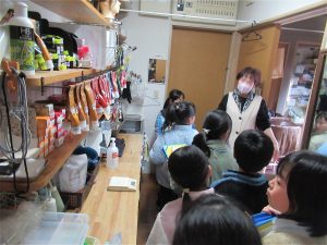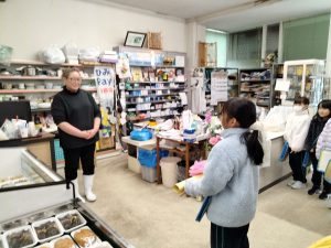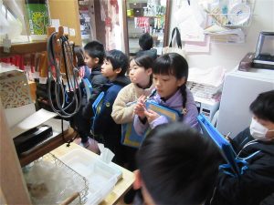 お店の中を見せてもらい、「何年前からお店があるのか」「どんなお客さんが来られるのか」「名前の由来は?」等、たくさん質問しました。