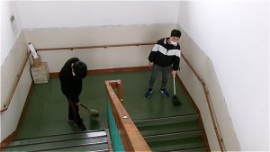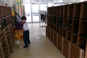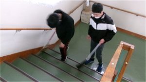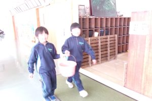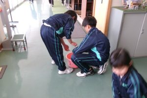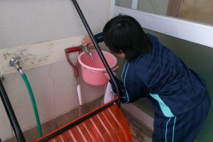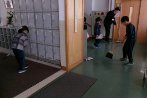 今日は、縦割り清掃の日です。冬校時では、週2回縦割り清掃があります。