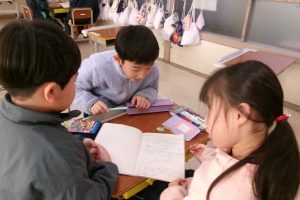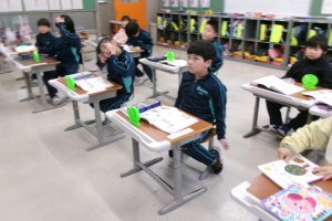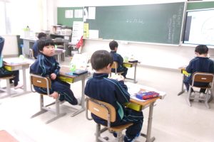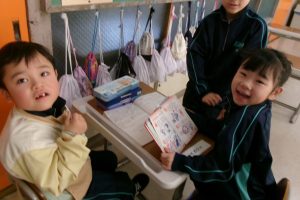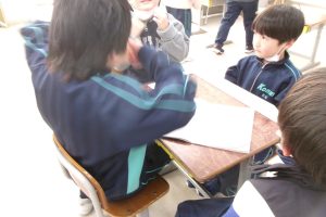 2年生は、帰りの会。今日の嬉しかったこと、楽しかったことをたくさん発表していました。
