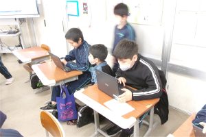 3年生は、算数科の学習で、今日学習したかけ算の筆算のプリントに取り組んでいました。