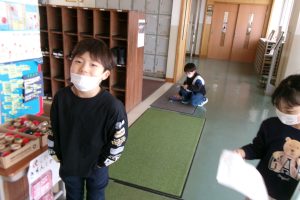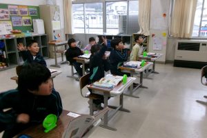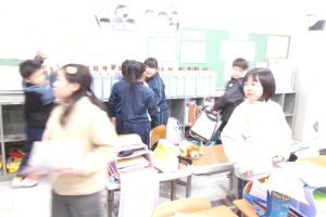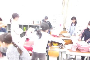 3年生は、帰りの準備です。配り物を配ったり、片付けたりするなど、急いで準備していました。