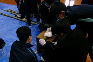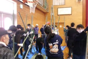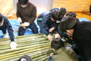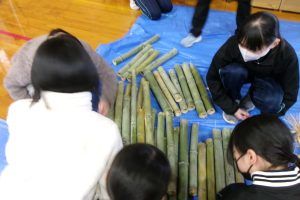 竹の長さをみんなと相談して決め、竹割りやひもで縛る際も、協力しながら集中して取り組みました。