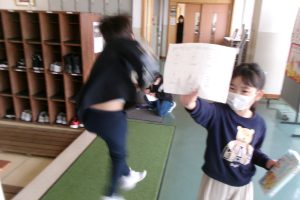 元気な学年は、昼休みに4年生が総合的な学習の時間に作成したスタンプラリーをしたり、廊下に掲示してあるなわとび集会の結果を見たりしながら過ごしていました。