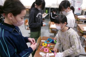 プリントが終わった子供たちで、6年生へのプレゼント作りにも取り組んでいました。