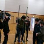6年生は、ひみ竹林ネットワークの6名の方に教えていただき、竹馬づくりに挑戦しました。