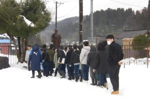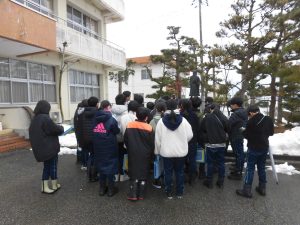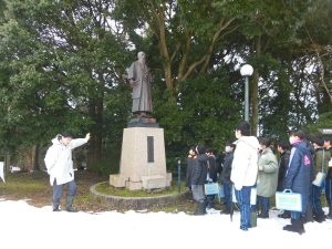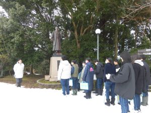 まず、弥九郎像がある朝日山公園、脇之谷内公民館、氷見市立十三中学校の三カ所を巡り、