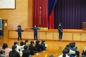 学校に到着した後も、教室で「マンガ 幕末の剣豪 斉藤 弥九郎の生涯」を読みながら、弥九郎の功績、生涯にについて学びました。歴史上に残る人物の名前がたくさん出てきたので、子供たちも社会科の歴史で学んだこととつなげて考えることができたと思います。