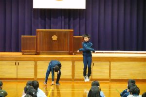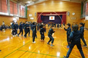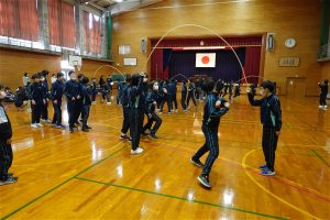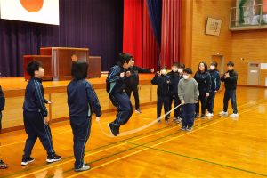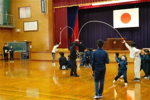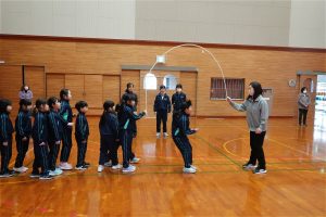 各学年代表の模範演技の後、種目別の部、8の字跳びを行いました。