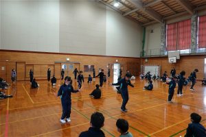 5年生は、明日のなわとび大会に向けて8の字跳びの練習をしていました。