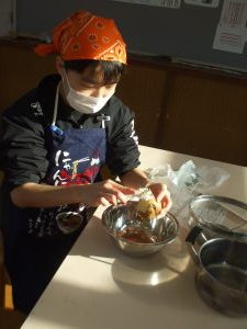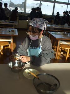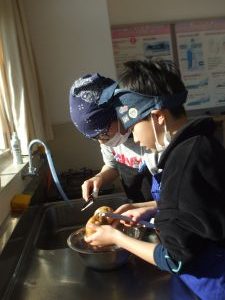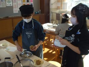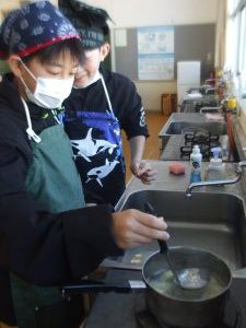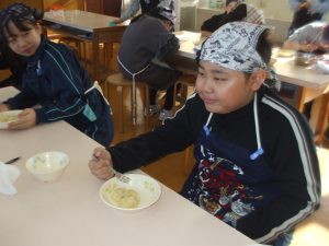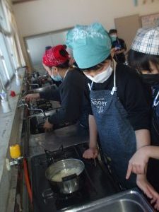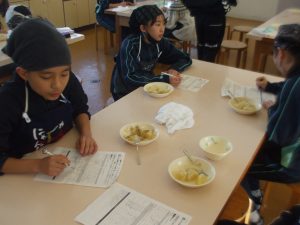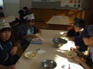 5年生は、家庭科の学習で「ゆでいも」を作りました。