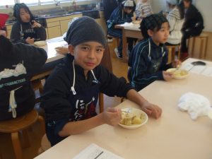 塩こしょうで味付けしたゆでいもを、みんな「おいし~!」と喜んで食べていました。