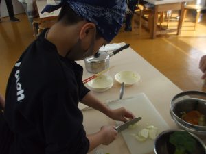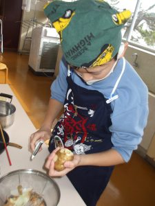 みんなで役割分担し、おいしいベーコンポテトになるようがんばって取り組みました。