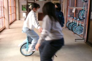 体育館、渡り廊下、教室等、さまざまな場所で昼休みを楽しんでいました。