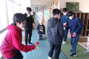 登校したら、すぐにけん玉に挑戦しにくる6年生。本当に、最後まで頑張る湖南子です。