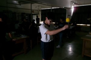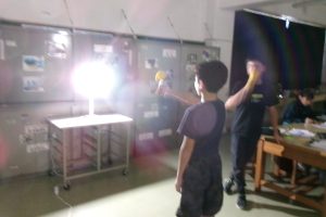今日は、理科室を暗幕で暗くし、