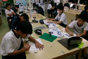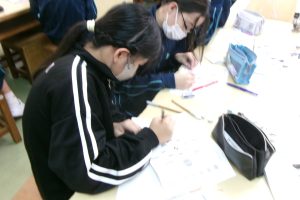 全員が実験した後は、月の位置とその時の形をワークシートにまとめました。