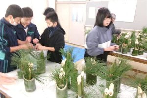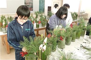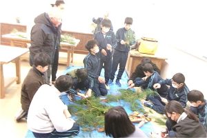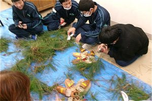 6年生は門松づくりの最後の仕上げを行いました。