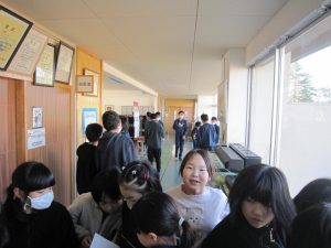 昼休みは、校長室前に俳句の挑戦をしようと集まってきます。