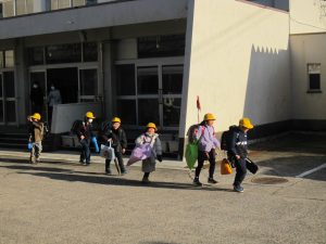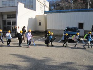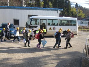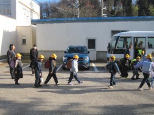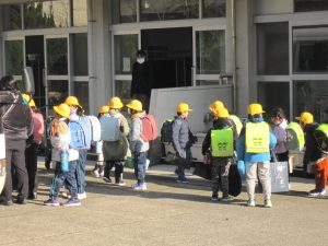 久しぶりの青空。1~3年生は、元気いっぱい帰っていきました。