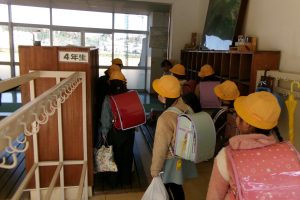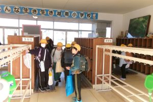 元気に湖南子が登校し、新しい下足箱へシューズを入れ、教室に入っていきました。