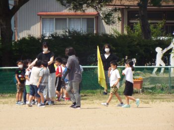 ボールをとって、全員すわったらアウト・・・など、どの子供でも楽しめるようにルールを変えてやっています。