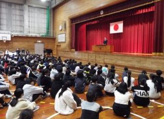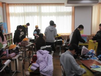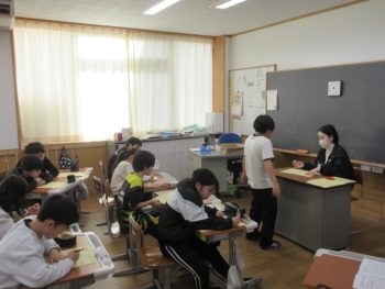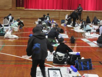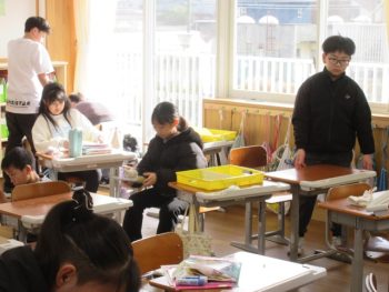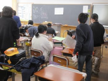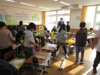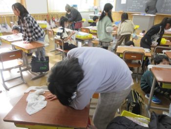 先生の話を聞く前に机の上をきれいにしました。